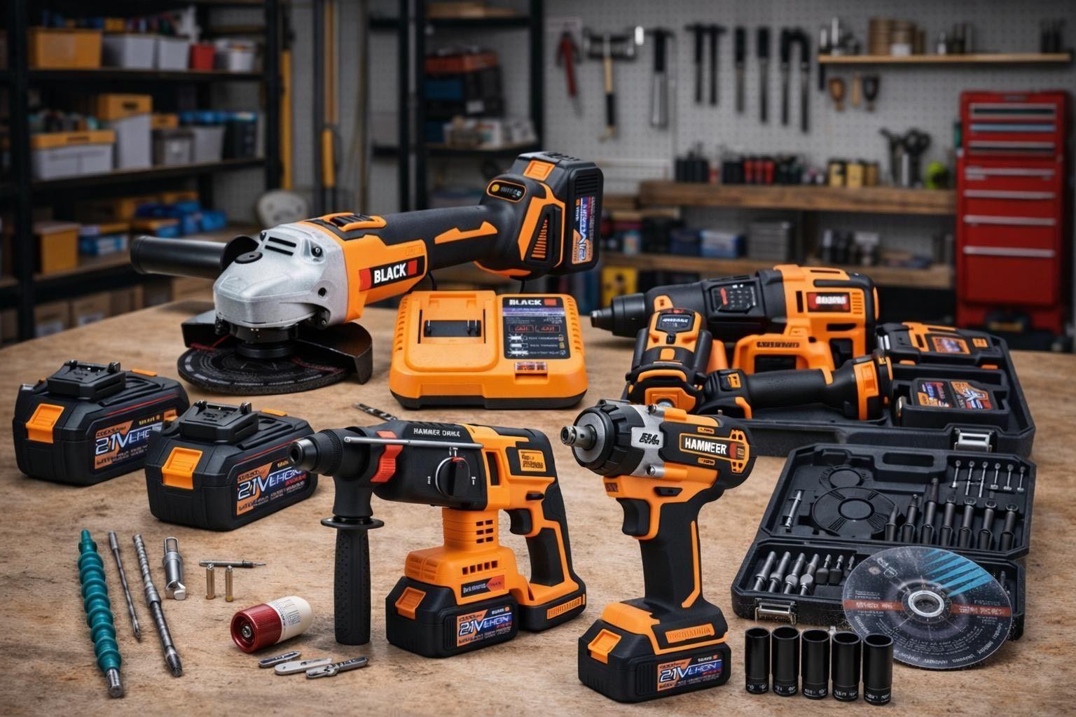 Leistungsstarkes 3in1 Akku-Werkzeugset Schlagbohrhammer Winkelschleifer Schlagschrauber